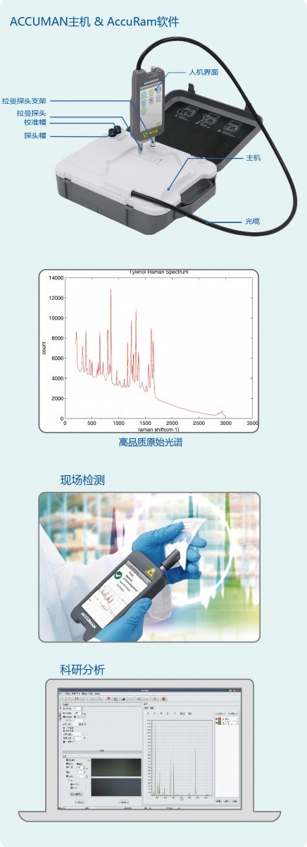 產(chǎn)品介紹 海洋光學推出全新科研級拉曼檢測利器ACCUMAN SR系列,硬件配置全新升級,具有堪比大型臺式拉曼的優(yōu)異性能??焖偃菀咨鲜值呐涮总浖拓S富的采樣套件,大大地簡化了拉曼科研過程中復雜的采樣,數(shù)據(jù)提取和處理流程,無需儀器搭建準備,即可快速進行測試。同時,得益于小巧便攜的外形,獨立運行的手持終端,大容量電池供電,能在實驗室以外的各類現(xiàn)場環(huán)境中快速采集和分析數(shù)據(jù),是一款高性能的跨界產(chǎn)品。ACCUMAN SR系列可廣泛應用于化學、生物、制藥、材料、藝術(shù)考古、珠寶、環(huán)境污染、鑒定鑒偽、半導體、教學等領域。